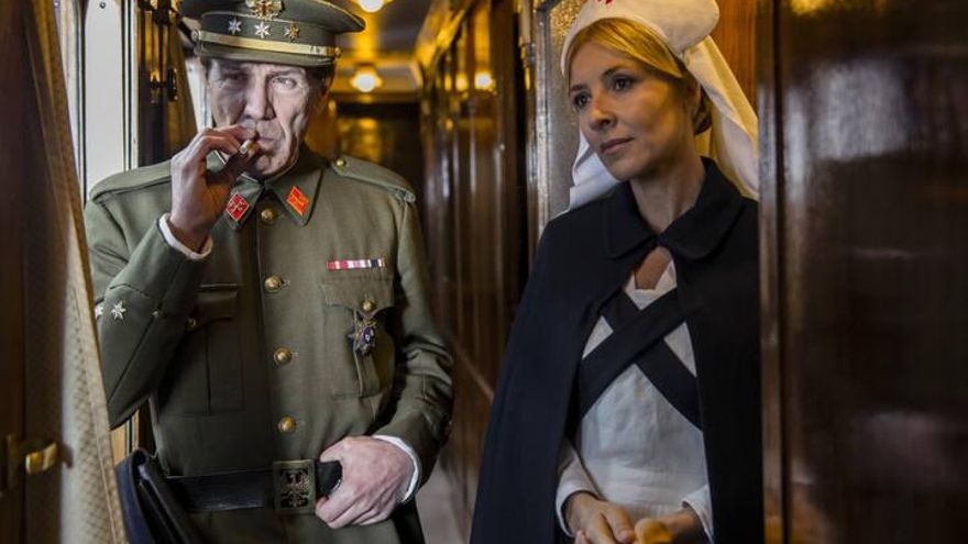 Irene y Ernesto (de quien seguimos sin saber de qué tiempo es) se infiltran en el tren que va a Francia. Ella de señorita de la cruz roja y él de capitán.