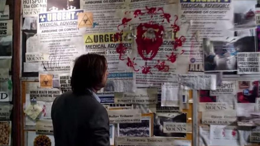 Saltamos hacia atrás, año 2013. Vemos la imagen de ese mismo reloj en la mano de una bella doctora que imparte una conferencia ante sus colegas sanitarios, donde predice una epidemia global que asolará el planeta. Al dirigirse a su coche y mientras mantiene una conversación telefónica con su novio (asistente del Senador Royce), es asaltada y obligada a conducir su coche por un hombre.