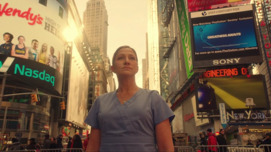 Incapaz de soportar la culpa, Jackie se va al lavabo a consumir tres rayas de cocaína para evadirse del sentimiento de culpa y de pérdida. Tras esnifarla, vemos su ilusión en plena Madison Square donde se une a un grupo de gente practicando yoga, donde una esterilla la espera justo en el centro.