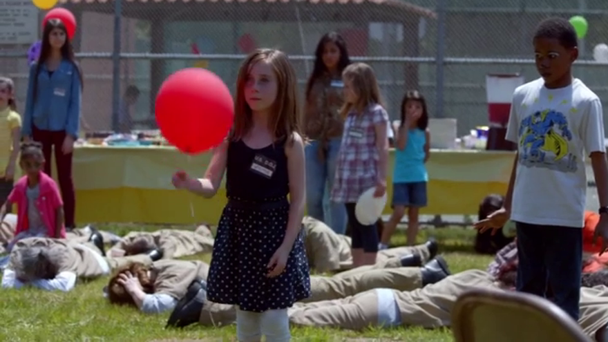 Pero tanta harmonía no podía durar eternamente, y debido a la desaparición de una de las hijas de la familia Diaz, se da el toque de queda ante la cual todos están obligados a tumbarse en el suelo, echando por tierra la fiesta, y asustando a los críos que ven a sus madres inmóviles en el suelo.