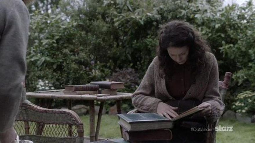 Mientras, Claire busca desesperadamente en los libros cuál fue el resultado de la rebelión Jacobita y si hay alguna referencia de Jamie, si él murió en la batalla de Culloden. Encuentra a la señora Graham como cómplice – recordemos que ella era la única que creía en la posibilidad de que Claire hubiera viajado en el tiempo – y ella le recomienda de que deje ir a Jamie y no lo convierta en un fantasma de su relación con Frank. Después de esta charla, Claire decide darle una oportunidad a Frank y contarle todo lo que ha ocurrido desde su partida. Todo. Dos años de ausencia que han dado para mucho y que acaba con la revelación de que ¡ella sigue enamorada de Jamie y que va a esperar un hijo suyo!. Los que nos hemos leído el libro sabemos de que va la historia, pero intuyo que la gente que sigue solo la serie no sabe esto a qué viene…¿Pero no se supone que está embarazada con Jamie en el barco? ¿se va ya a su época?. Calma y veréis, no os va a defraudar. Ante esta revelación, Frank se alegra un momento hasta que cae en la cuenta de que el bebé no puede ser suyo (por partida doble además: es estéril y hace dos años que no tiene relaciones con ella), así que cambia su alegría por furia.