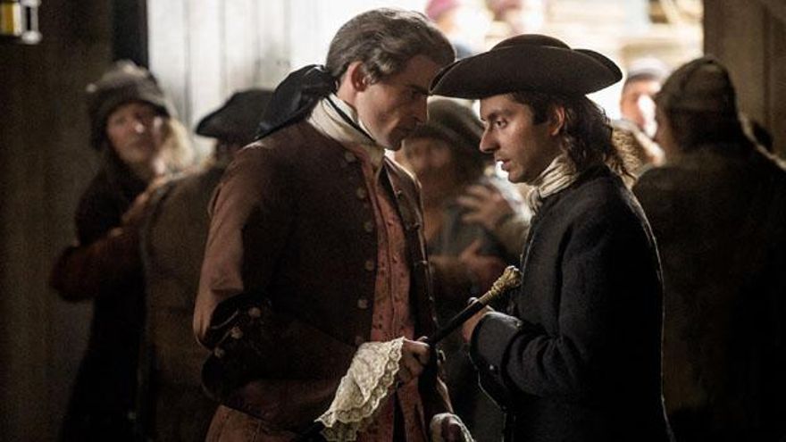 Ya nos estamos acostumbrando a las meteduras de pata de Claire – todas comprensibles desde nuestra óptica del S.XXI- y como no, esta ocasión no va ser diferente. Claire va a dar un paseo por el puerto, cuando ve a un hombre que lo están sacando a escondidas hacia una bodega. Ella es muy avispada y le ve una especie de póstulas en las manos que la hacen sacar su vena de enfermera. Ante todos los presentes dice que ese hombre tiene viruela y que tienen que ponerle en cuarentena. El capitán del puerto, en presencia del Compte de St Germain – dueño del barco de donde procede el enfermo- dice que si el hombre tiene viruela, tienen que quemar el barco con todo lo que haya dentro para que no se propague por la ciudad. Evidentemente, esto le sienta un poco mal al conde, ya que pierde todo el cargamento y por tanto, mucho dinero, y se encara a los Frasers diciéndoles que se la pagarán.