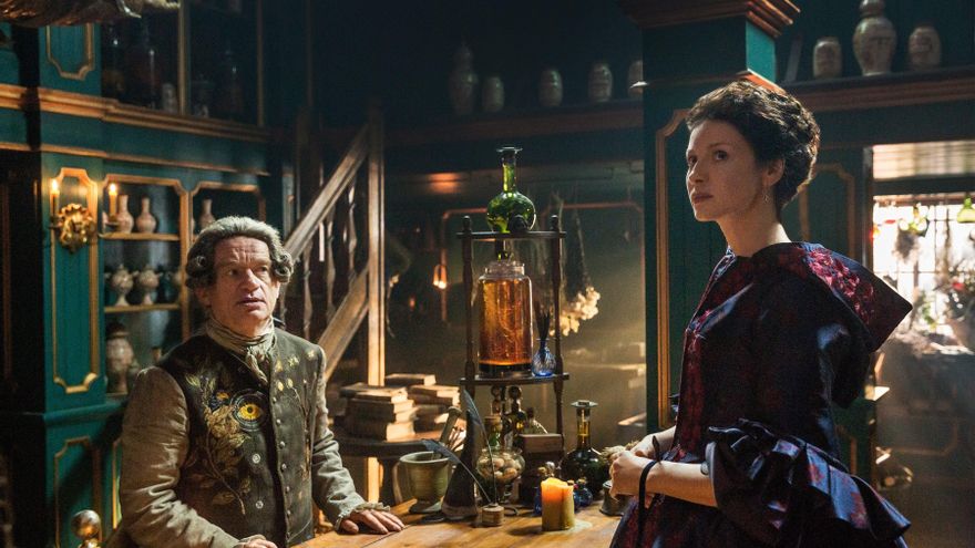 Poco antes ha aparecido en la escena el Comte San Germain, archienemigo de la pareja desde el episodio uno de la segunda temporada, quien los vigila de cerca. De repente, tras beber una copa de vino, Claire empieza a encontrarse fatal y Jamie tiene que ir a socorrerla.