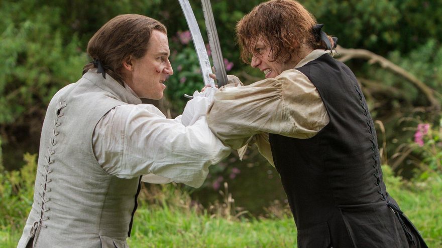 Claire vuelve a casa y se encuentra con una nota de Jamie: “I am sorry. I must” (Lo siento mucho. Debo hacerlo). Claire se va todo lo deprisa que puede en el carruaje a la zona de París donde habían hablado Jamie y Murtagh de hacer el duelo. Cuando llega, encuentra a Jamie y a Jack Randall batiéndose en duelo con una intensidad abrumadora. De la tensión de no saber “cuál de mis dos hombres morirá”, tiene unos dolores muy fuertes que la hacen caer justo cuando Jamie mete su espada en la entrepierna de Randall. No nos da tiempo a más, justo cuando ella cae, los gendarmes apresan a Jamie (recordamos que batirse en duelo en Francia en aquella época estaba prohibido) y Randall cae derrotado en el suelo.