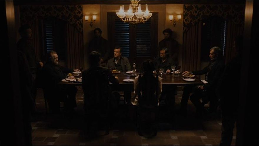 Y pasamos a una escena tensa en una cena en la que se juega al póker con palabras, faroles y disparos, en la línea de las últimas películas de Tarantino. Mención especial a Ethan maldiciendo la mesa, tal vez el momento más brillante del episodio junto con sus caras cortando la carne.