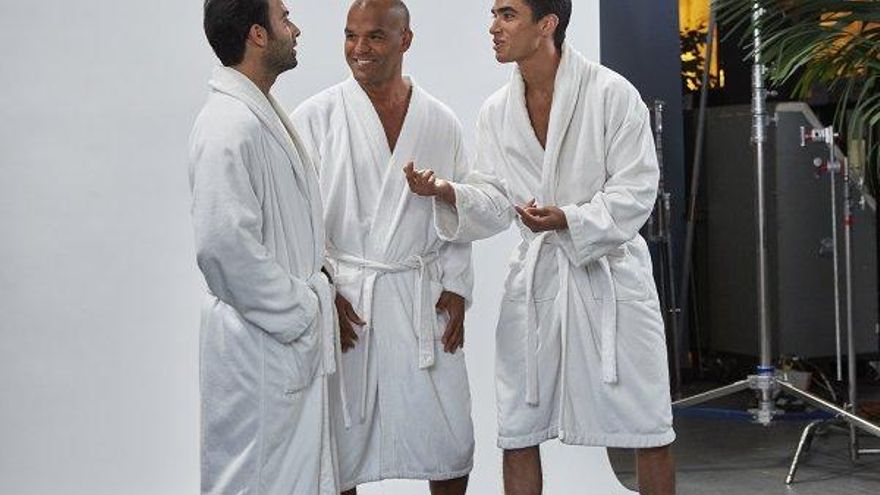 Resulta que nuestros galanes están muy lejos de sentirse tan seguros de sí mismos como aparentaban unas escenas atrás. A Gael le ha salido un grano (a los de maquillaje se les ha ido la mano), Rodrigo tiene un bíceps menos desarrollado que el otro (que alguien me preste una lupa porque yo no me había dado cuenta) y Xavi ha heredado la mandíbula de su madre (¿dónde está el problema?). Dejando a un lado, el exceso de autoexigencia física de estos actores, lo cierto es que fue muy divertido verlos organizando una estrategia de posado para taparse los defectos entre todos. Eso es solidaridad masculina. Aunque para momento simpático, la aparición estelar de Gustavo. Adiós a la ropa y adiós a los complejos debería ser su lema vital.
