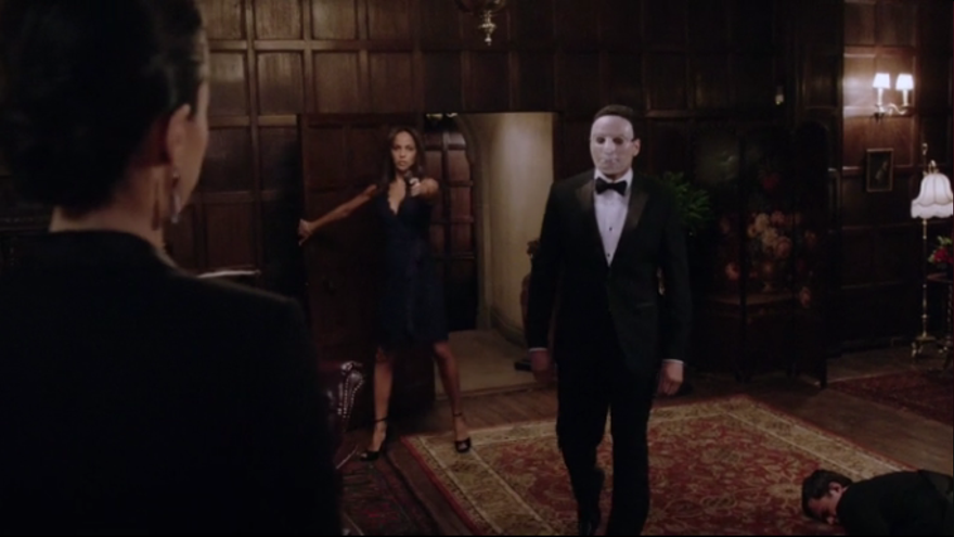 Nuestros temores pueden confirmarse: en la mansión se celebran orgías… Orgías del crimen. Todo tipo de habitaciones de aire clásico con utensilios para poder mutilar, torturar y asesinar a personas que, imaginamos, no sabían para qué estaban allí. Todo aderezado con camareros vestidos al más puro estilo ’50 Sombras de Grey’ y agentes de seguridad ajenos a todo. Pero como eso no interesa ni a Theo, muy elegante ataviado con un traje y una máscara, ni a su hermana – demasiado fácil de conseguir para ellos –, van directos al despacho de Eliza, la anfitriona.