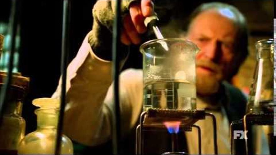Abraham pone a calentar unos gusanicos para la cena, los observa por el microscopio y exclama: “oh Dios”. ¿Qué pasa? ¿qué habrá visto? Sigue haciendo pruebas con probetas, al final vemos que lo mete en un bote de cristal y con un dispensador se echa unas gotas en los ojos. ¿¿Qué hace??