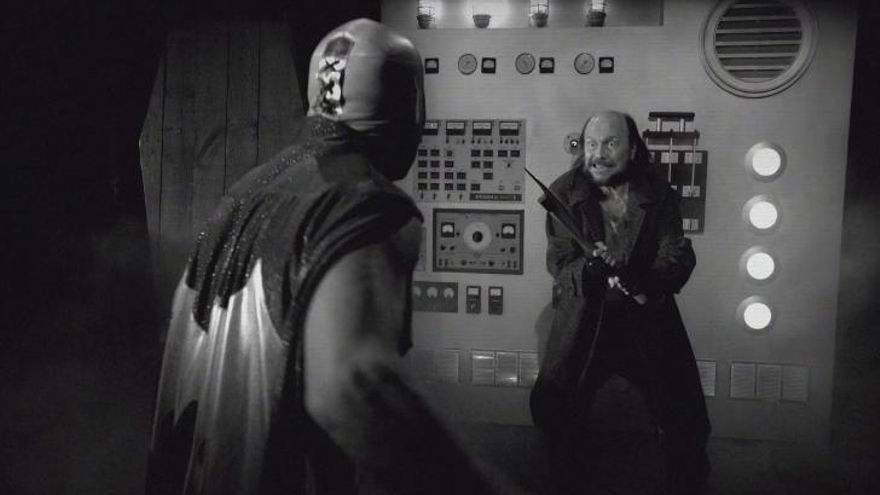Empieza el capítulo con lo que parece un fragmento de película antigua, en blanco y negro, con un combate de lucha mexicana. Y ¡Oh, sorpresa! Santiago Segura hace un papel secundario, es el siervo de un vampiro al que acaba de matar el luchador ángel de plata. Gracias al cielo la película la van rebobinando, una especie de serie Z. Y vemos al fin quién está visionando tal cutrez, es el mismísimo ángel de plata, repasando su filmografía.