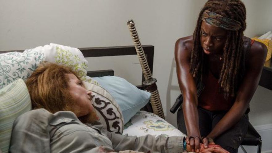 Michonne está curando a Deanne, ha acabado con su pierna, que dice que parece lo peor. Cuando entonces levanta su camiseta y se ve un mordisco en su costado. Deanne solo sabe decir: “Jodeeer”. Si hija si, joder, se te acabó la aventura de vivir.