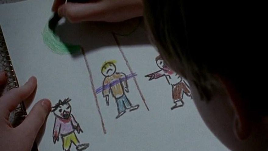Al grano, vemos una secuencia de imágenes con el pequeño hijo de Jessie, Sam, como protagonista, encerrado en su mundo piruleta de la planta de arriba, de donde no quiere salir para que el mundo real y los monstruos no le puedan hacer daño. Aún así vemos que dibuja, precisamente, algo que Carol le contó, que le dejaría en el bosque atado a un árbol para que los monstruos se lo comiesen.