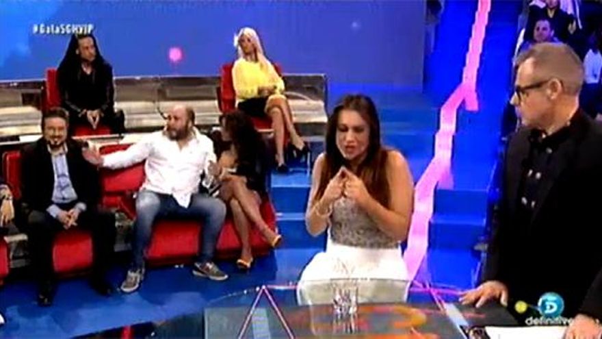 En primer lugar, hay que recordar el enfrentamiento entre David, el primo de la expulsada, y el hijo de Isabel Pantoja. Este último no dejaba de escuchar los comentarios que a sotoboche profería el primero, sentado a su lado, y acababa por tocarle el hombro, no precisamente en señal de apoyo. David se puso en pie y acusó a Rivera de haberle agredido.