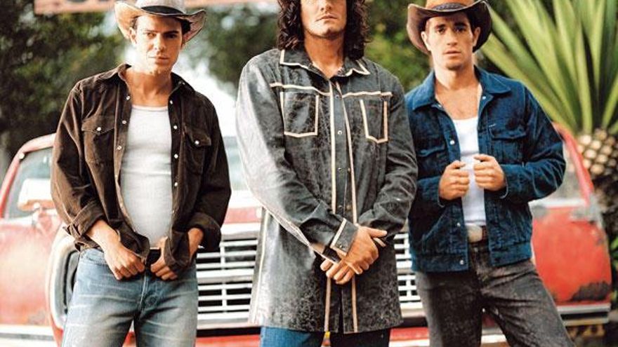 También los “culebrones” inspiran a nuestras mejores ficciones. En este caso la serie colombiana presenta a los tres hermanos protagonistas con semblante serio “preparados para lo que pueda venir” con su camioneta detrás. De la misma forma se presentan los tres “lobos” que esperan las tramas que llegarán con el carro de caballos detrás. Y como han descrito algunos críticos la serie de Telecinco, se trata de una serie de “guapos” en la que todos los pesonajes masculinos son atractivos. Lo mismo pasa con los gavilanes. Y por ello vemos las dos imágenes siguientes, con ellos mostrando mucho más cuerpo que ellas.