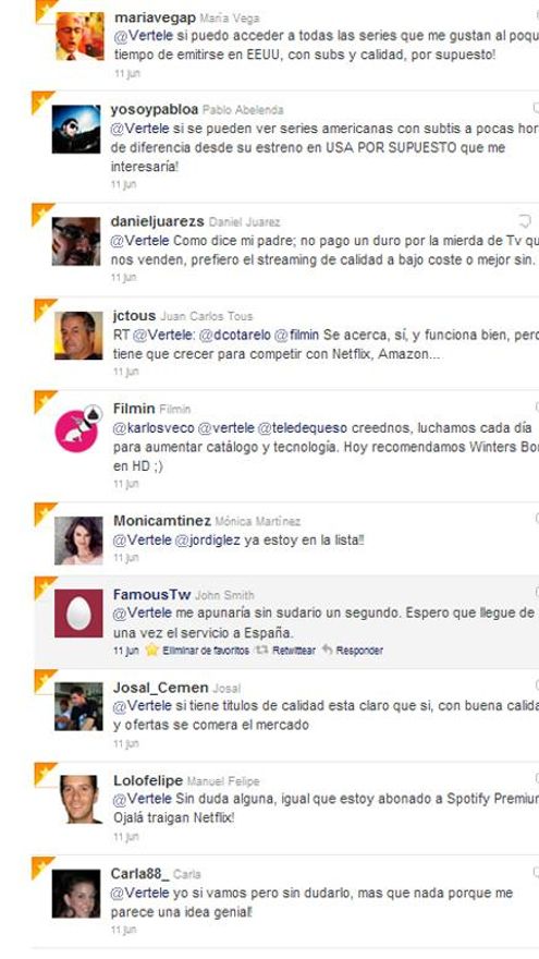 Vertele ha preguntado a sus lectores en Twitter sobre el desembarco de Netflix: