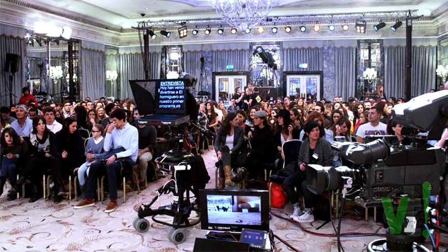 A la hora indicada, más de 250 personas (de las 5.000 que habían solicitado acudir como público) aguardaban en la puerta lateral del hotel con un ánimo contagioso. Matronas, camareros, estudiantes o profesores de español, bullían. Ya una vez dentro, todo el plantel de humoristas, además del regidor, fueron los encargados de mantener esa energía hasta la llegada del invitado. ¡Y qué bien lo hicieron!