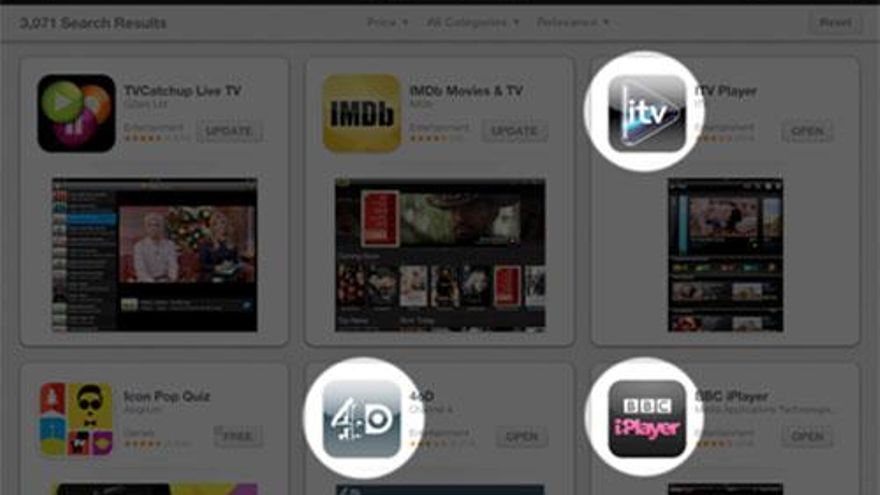 1) Descargar las aplicaciones de los canales que queramos seguir: BBC iPlayer, ITV player, 4oD y Demand 5. Para eso necesitaremos una cuenta en el App Store UK, ya que no las encontraremos en el catálogo de España. Para crear una cuenta en esta tienda de forma gratuita y sin asociar datos bancarios, hay que consultar este enlace: (http://support.apple.com/kb/HT2534). Otra opción es que un amigo con cuenta en la tienda británica nos la preste para descargar las aplicaciones.