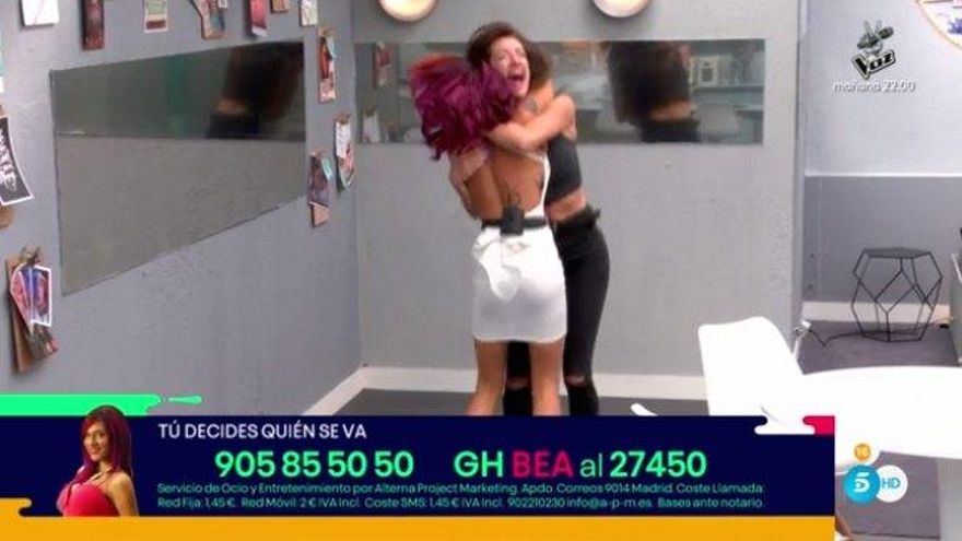 Jorge Javier conectaba con ellas y les informaba de que “la audiencia ha decidido que debe abandonar la casa Adara”. En ese momento a Bea le daba un ataque de nervios, gritos y euforia por la alegría de 'ganar' a su rival y salvarse ella.