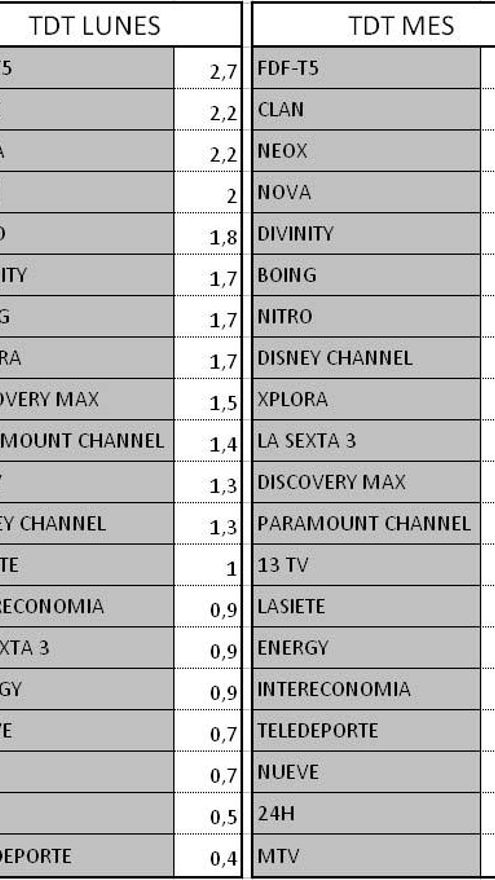 Los 10 programas más vistos en la TDT del lunes 30 de septiembre