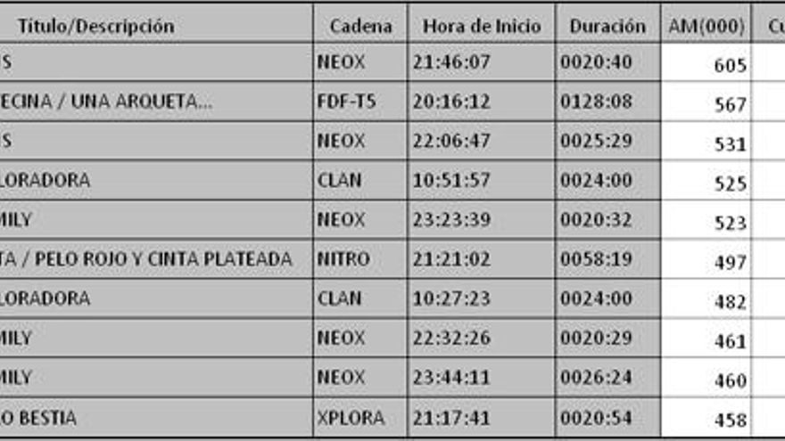 Los 10 programas más vistos del domingo en la TDT