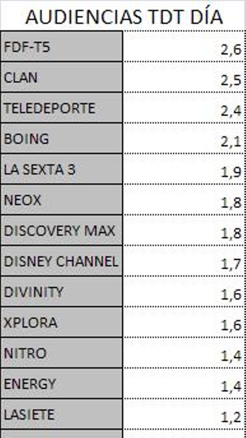Audiencias TDT del domingo