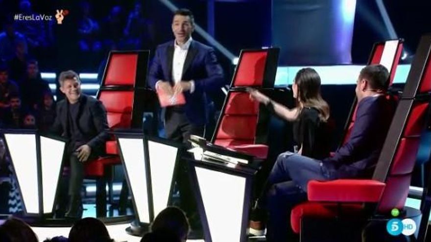Jesús Vázquez anunciaba que la próxima semana volvería a 'La Voz' Laura Pausini y todos los coaches se alegraban y aplaudían. Pero Alejandro Sanz miraba a Malú y decía entre risas: “Nosotros la queremos mucho, pero Malú la quiere menos”.