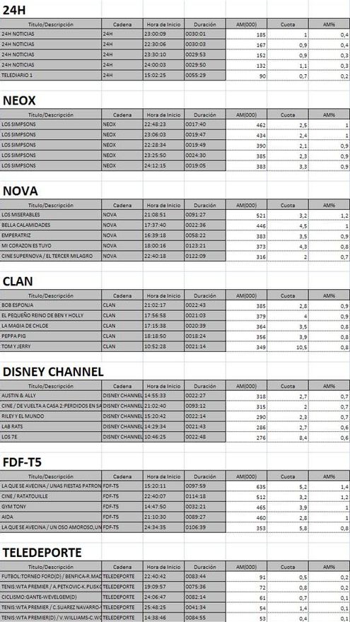 Top cinco programas por cadena del martes en la TDT