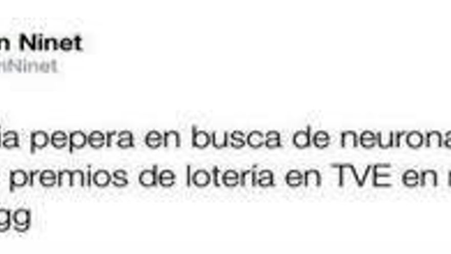 En concreto, de Carmen Ninet, diputada del PSOE en las Cortes Valencianas. La socialista publicó durante el sorteo el siguiente ‘tweet’, quejándose de la elección de conductora por parte de la pública: “Lo de la rubia pepera en busca de neurona que presenta los premios de lotería en TVE es normal? Aggggggg”.
