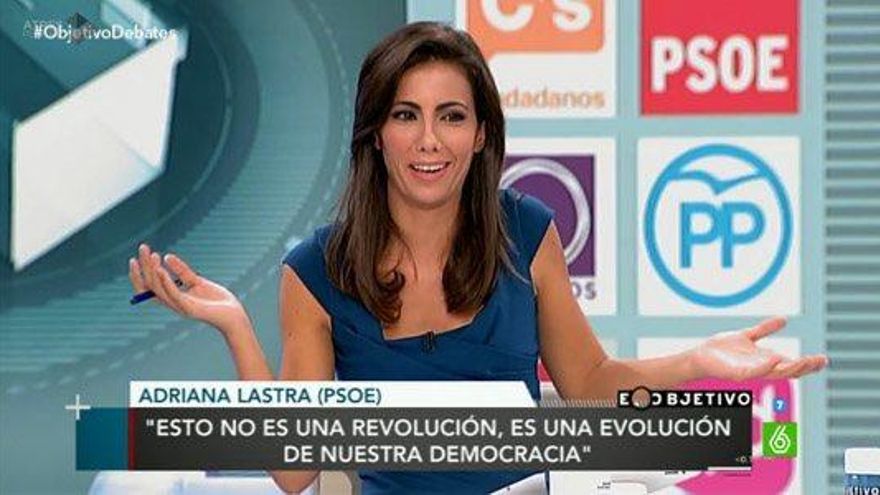 El programa de laSexta invitó a representantes del PP (Pablo Casado), PSOE (Adriana Lastra), Ciudadanos (Fernando de Páramo), Podemos (Íñigo Errejón) y UPyD (Andrés Herzog). La primera en alzarse “protagonista” fue la representante socialista.