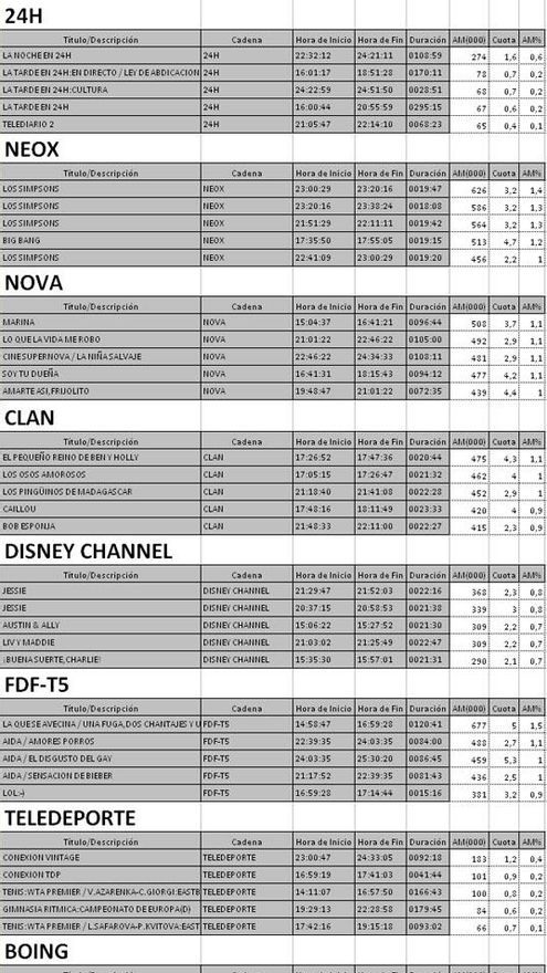 LOS 5 PROGRAMAS MÁS VISTOS EN CADA CADENA