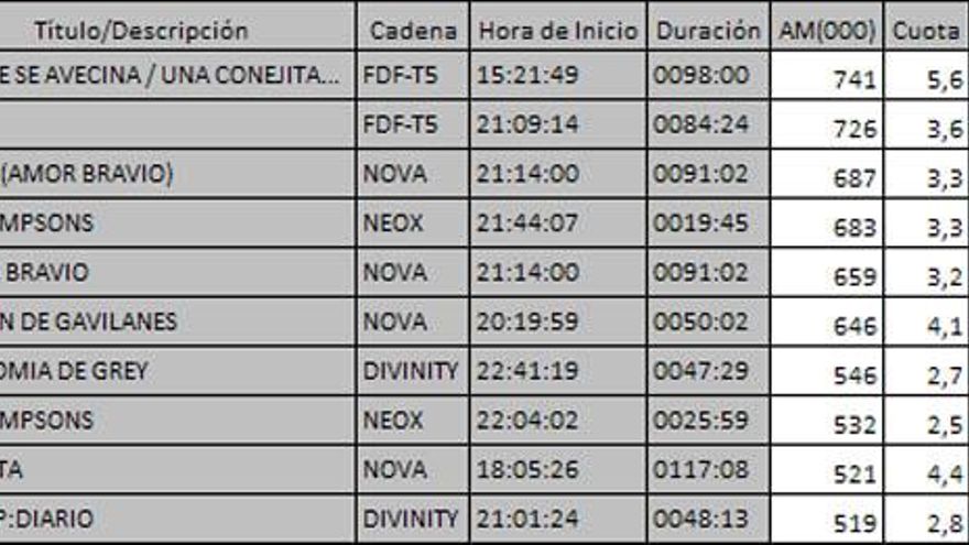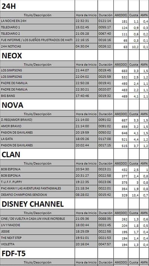 Top 5 programas por cadenas