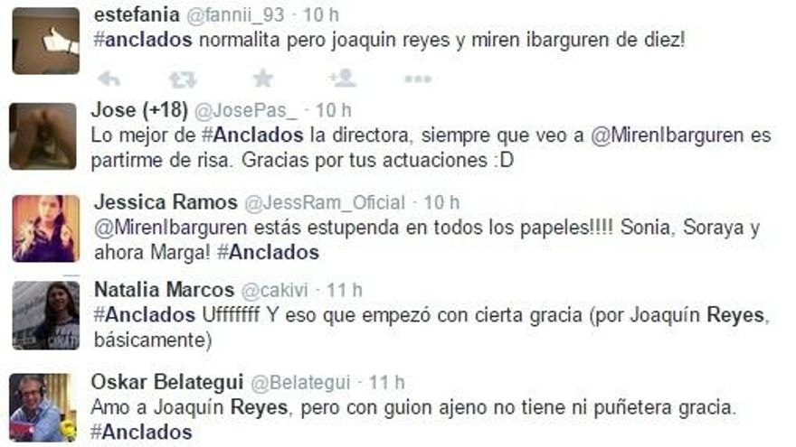 Hubo felicitaciones para muchos de los actores de la serie, las más generalizadas se dirigían a Miren Ibarguren, Rossy de Palma y Joaquín Reyes. Este último también recibió algunas críticas por los que preferían verlo con guiones propios: