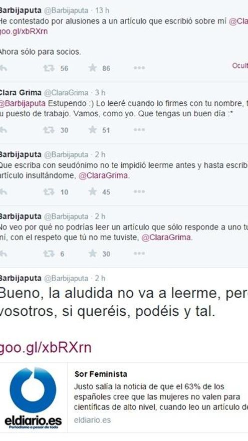 'Sor Feminismo' vs 'Sor Feminista'. Este 25 de septiembre en Twitter se sucedían TT y numerosos comentarios ante los artículos escritos por Clara Grima y la tuitera Barbijaputa.