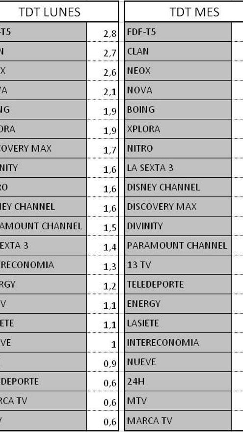 Audiencias TDT y Autonómicas