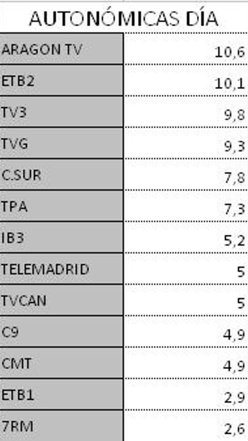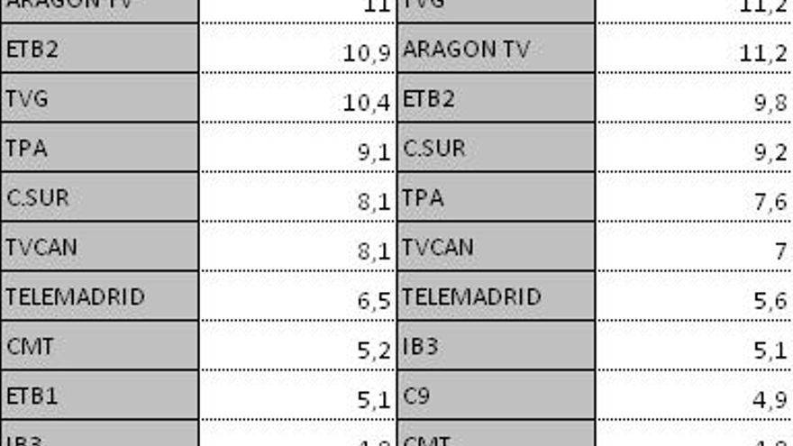 Audiencias autonómicas domingo 8 de julio