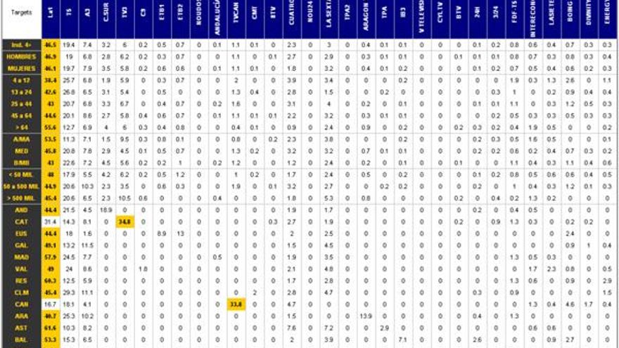La TV Canaria y TV3, únicas que arrebataron el dominio a TVE en toda España