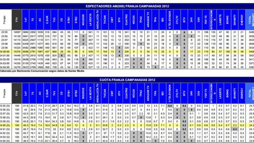 *Puede consultar el análisis de las Campanadas 2011-2012 y las Campanadas 2011-2012Campanadas 2010-2011