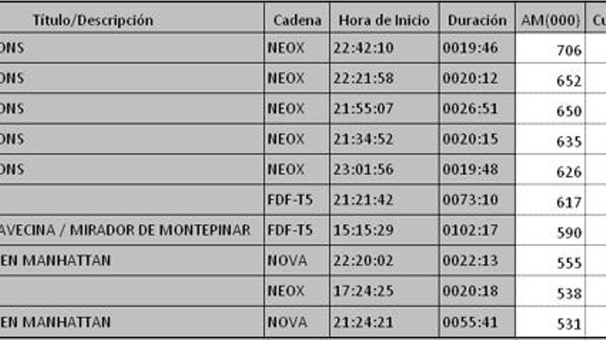 Top 5 programas más vistos del martes por cadenas