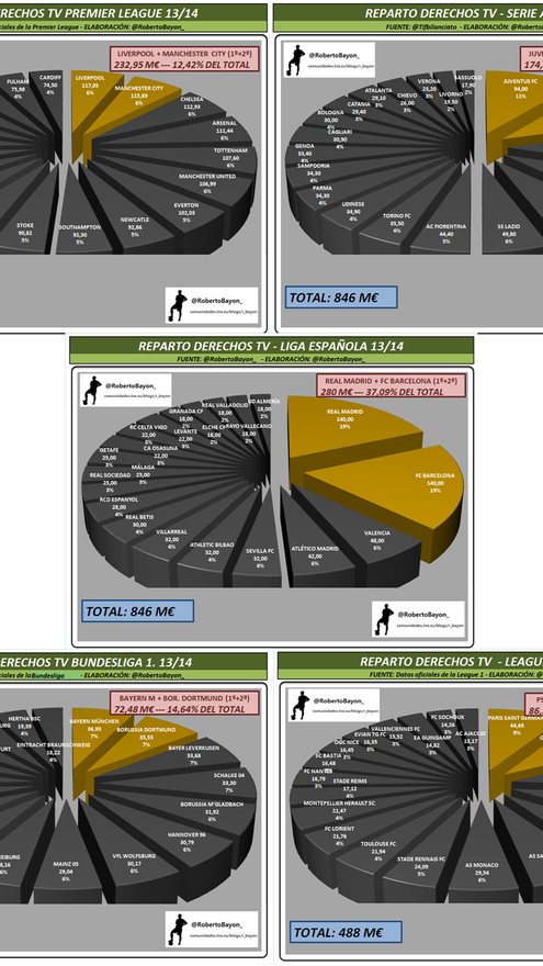 Así se repartían los derechos TV en la temporada 2013/14, según @RobertoBayon_