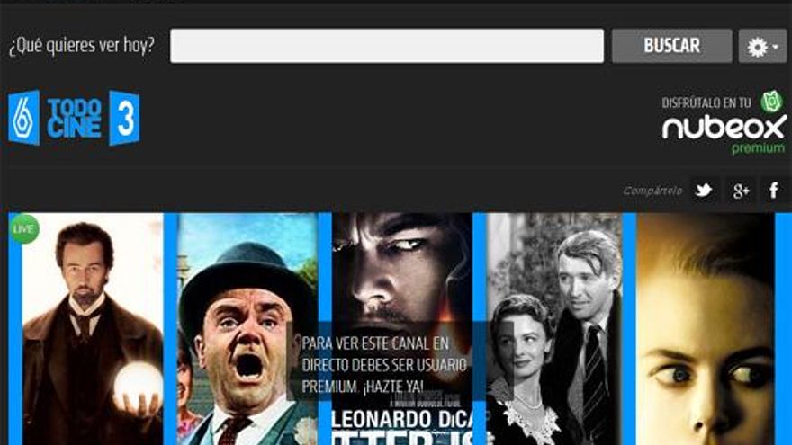 Nubeox, la plataforma online con canales temáticos y emisiones en VOD de Antena 3 ofrece la posibilidad de ver el canal de cine (y resto de ofertas) abonando la cuota de 10 euros al mes.