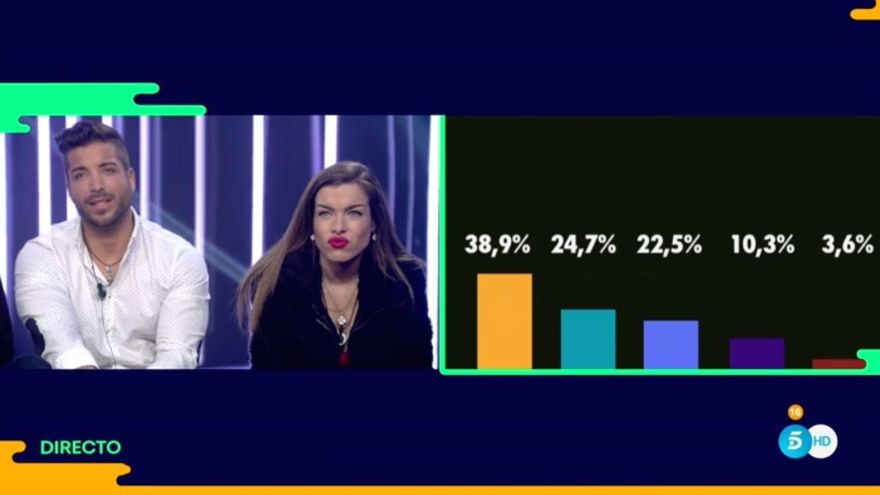 Así estaban los porcentajes la primera vez que se mostraron a los concursantes durante la gala. Estos creían que estaban viviendo la final, según palabras de Jorge Javier.