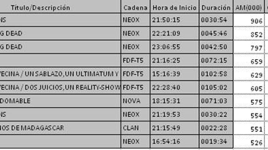 - 'Estudio Estadio'' (TDP): 0.4% y 71.000 / 1.2% y 122.000