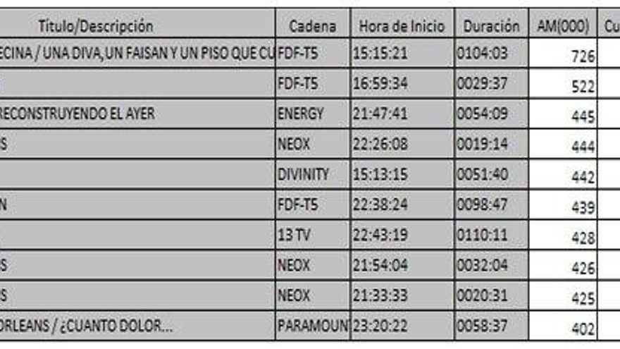 Los 10 programas más vistos del lunes en la TDT
