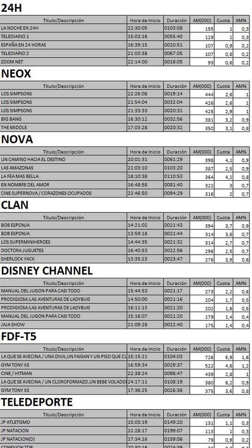 Audiencias completas nuevas cadenas de la TDT