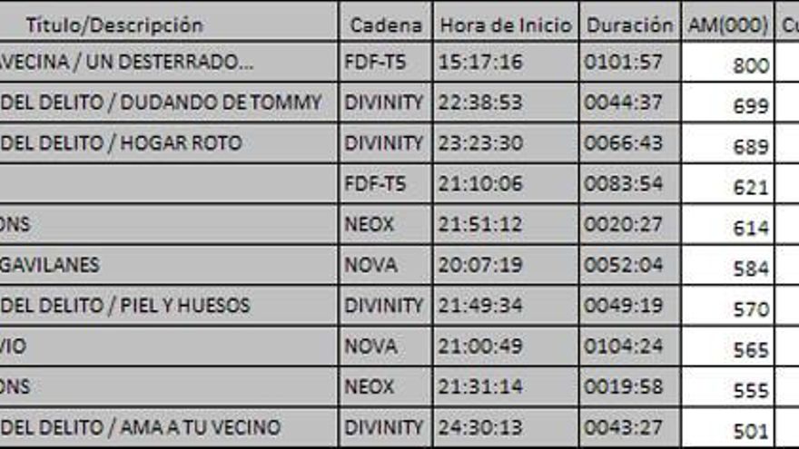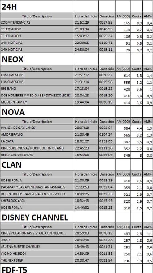 Top 5 programas por cadenas