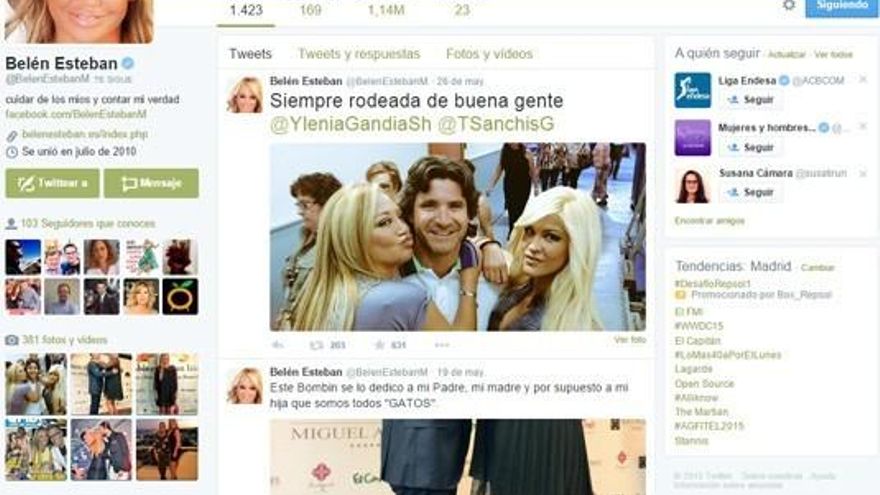 La cuenta de Belén Esteban (@BelenEstebanM) se abrió en julio de 2010, bajo el lema “cuidar de los míos y contar la verdad”.
