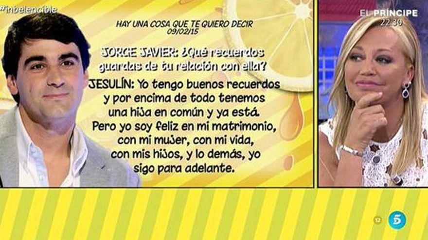 Uno de los temas ha sido la reaparición de Jesulín de Ubrique en Telecinco. Más concretamente, en 'Hay una cosa que te quiero decir', presentado por Jorge Javier Vázquez. La colaboradora evitaba pronunciarse sobre su exmarido, si bien dejó que no tiene intención de hablar con él. “En la casa hablé de él con mucho respeto y pensé mucho en mi hija y en que esto no era necesario. Pero Jesulín tiene razón y no tenemos ninguna conversación pendiente”.