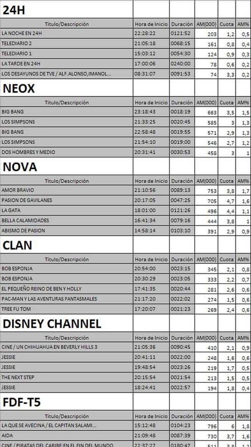 Top 5 programas por cadenas
