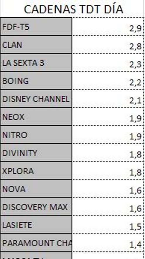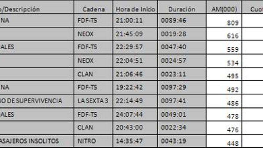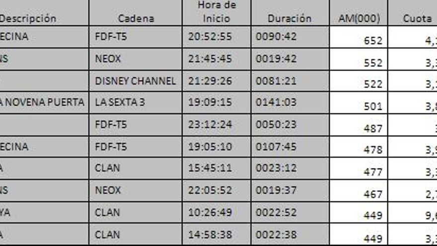 Los 10 programas más vistos del día en la TDT