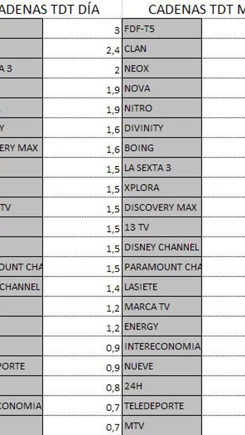 Audiencias Forta y TDT