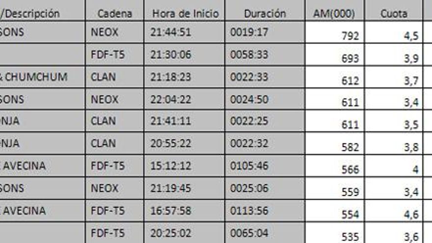 Los 10 programas más vistos del día en la TDT
